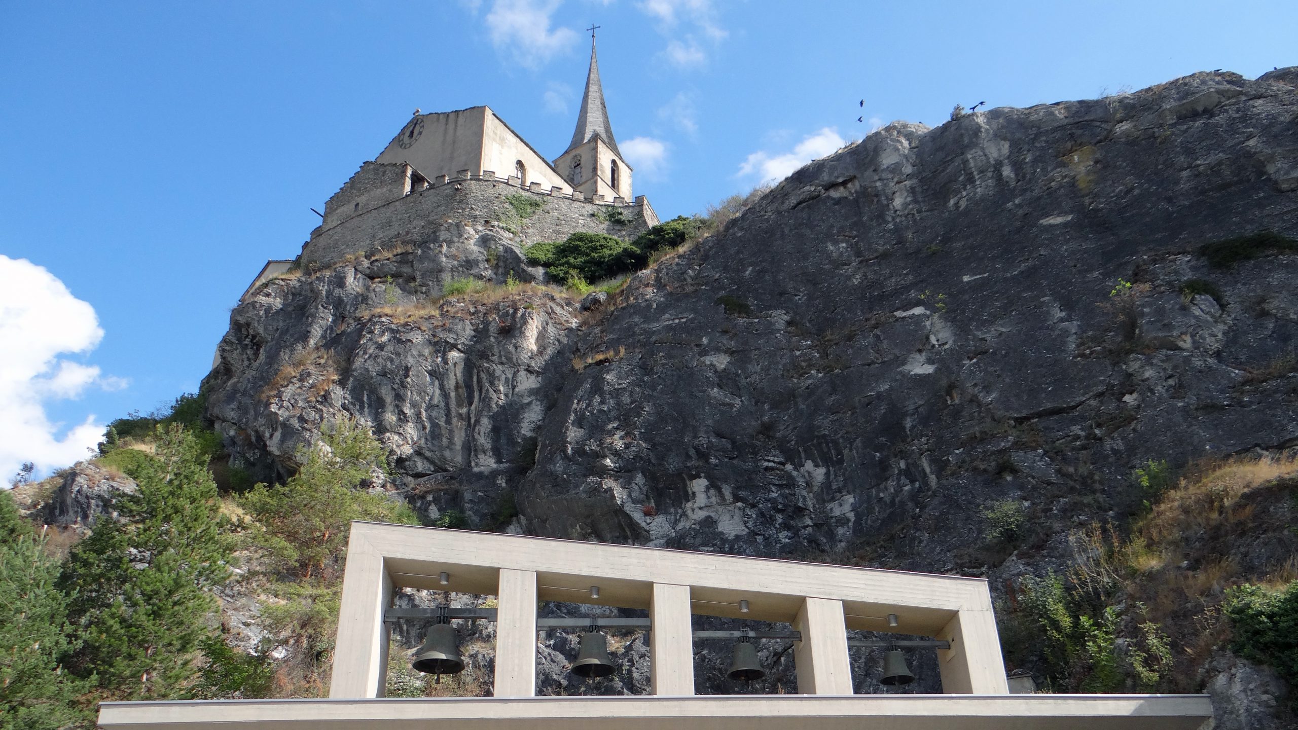 Die Felsenkirche St. Michael wurde 1974 nach 3-jähriger Bautätigkeit unter der Leitung des Architekten Donat Ruff fertig gestellt. Sie ist europaweit eines der jüngsten und eindrücklichsten Beispiele der jahrtausendealten Felsarchitektur. Das Kircheninnere im Burghügel wurde künstlich aus dem Fels gebrochen.